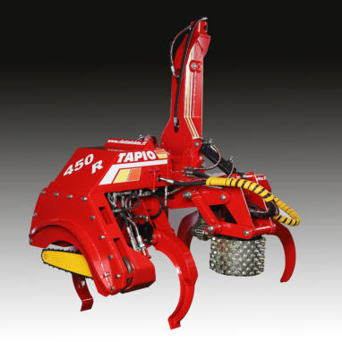 TAPIO 450 R ROLLEN - SCHUB - HARVESTERLänge x Breite x Höhe1700 x 1300 x 700 mmGewicht700 kg Stromversorgung12/24 DC Sägeschwert 18” 2.0 mmSägekette. 404” 2.0 mmPumpe/Druck 1500r/min 120 l/min. 180 barSchublänge 1 Meter, Schubgeschwindigkeit 1 m /sec Rollen - Entastung 3 m /sec.Entastungskraft 28.21 kN / 180 bar 31,33 kN / 200 bar Max. Fälldurchmesser 450 mmMax. Entastungsdurchmesser 400 mmLeistungsbedarf des Harvesters 70 kWStandartausrüstung Tapio 450 R Handbuch TAPIO 450 R Handbuch Messgerät LängenmessungDurchmessermessungHarvester - Steuereinheit mit Display, Kontrollboxen, Verbindungskabelnu. KonsolenSägeschwert .404-2.0 18” Sägekette .404-2.0 65 Vorwahlschaltmodul für Sortiment u. AusformungKabel vom 2x0,75 +2x1+2x2 vom Schaltmodul der Führerkabine zum Greifermodul des Harvesters
